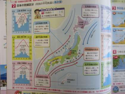 ・資料集P24の「日本の気候区分」の資料を見て色をぬる