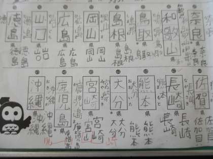 都道府県のプリントでは,余白を使って何度も復習しています。