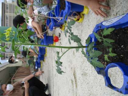 今日植えたミニトマトの苗は,生活科の授業で育て,観察します。来週,学校に来る頃には,もう少し大きくなっているといいですね。