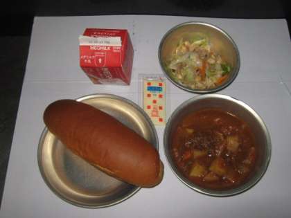 今日は野菜のソティにゆで大豆が入っていました。小袋のマヨネーズを各自でかけて食べました。