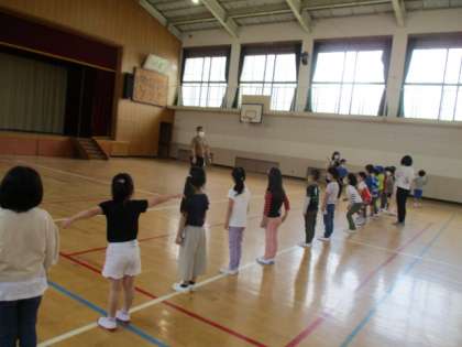 体育館では,体を動かしました。みんなで同じ動きを合わせてする遊びをしましたが,楽しそうに体を動かしている姿が見られました。