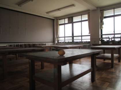 (なっちゃん)「わたしね,今日図工室に行ってみたの。何にもなかったわ。木の大きな机があっただけ。どうして何にもないのかしら。絵の具がたくさんついていたわ。ここで何をするのかしら。ここで大きな絵を描いてみたいな。」