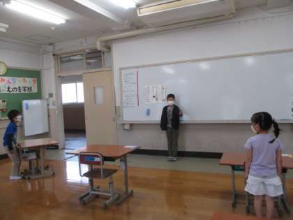 今日はAグループが登校しました。3人だけでしたが,勉強も頑張りました。朝の会や終わりの会は5年生が仕切ってくれました。頼りになります。