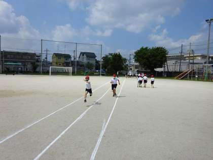 「ゴールで止まらずかけぬける!」とアドバイスをすると,1回目よりもタイムがよくなった人が多くいました!