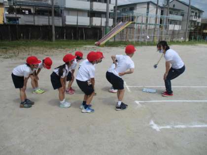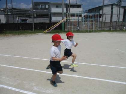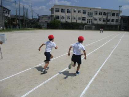 今日は,50mを全力で走りました。1年生と合同で取り組み,手本として頑張ってくれました。