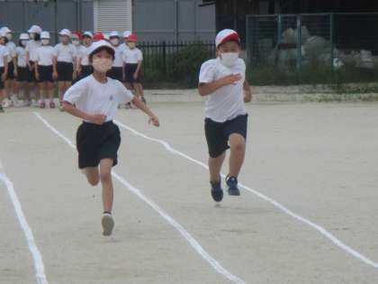 Bチームも2か月遅れの50m走をしました!最後まで必死に走り抜けました!昨日のAチームも今日のBチームも3年生のお手本となるような姿勢で頑張っていました。