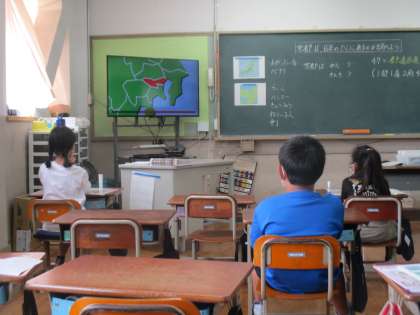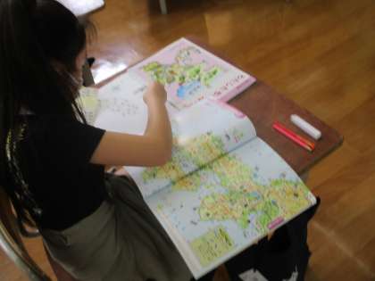 Bチームも1日目の最後の学習は社会でした。地図帳と白地図を見比べながら京都の位置関係や周囲の都道府県について学習を進めていきました。