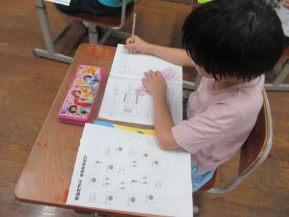 算数で「ひょうとグラフ」の勉強をしました。すきな遊びを数や◌でグラフに表すことで一番多い遊びや少ない遊び,比べることで気づくこともたくさんありました。