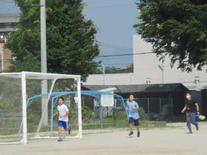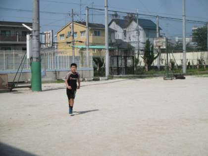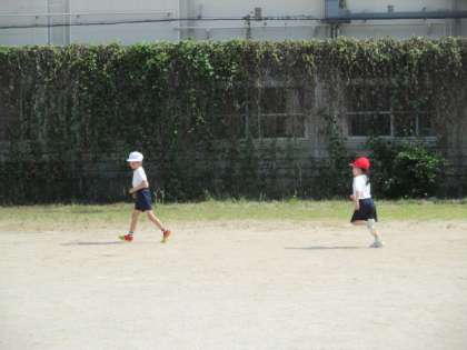 運動場を3周しました。