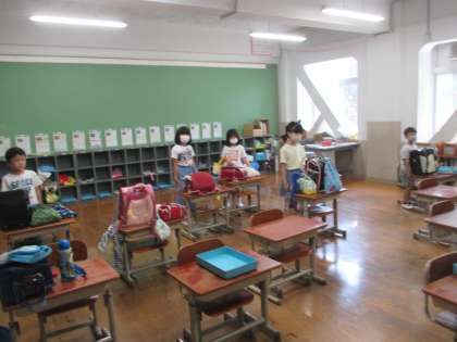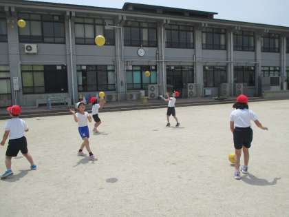 体育では,ボールを高く上げて遊んだり,小さく蹴ってドリブルしたり暑い中でしたが,水分補給をしながら楽しく活動できました。