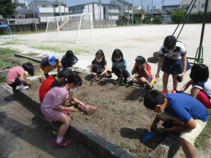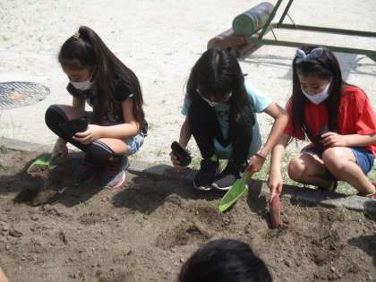 昨日Aチーム,今日Bチームがタネまきをして,クラス全員分のポットが揃いました!○○のタネとずっと書いていましたが,今日は答え合わせです。