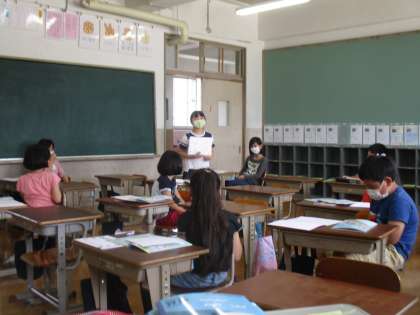 昨日のAチームに引き続き,あいさつ,名前,好きなものをみんなに発表しました。昨日のAチームでは出てこなかったような好きなものもたくさん出てきて盛り上がりました。