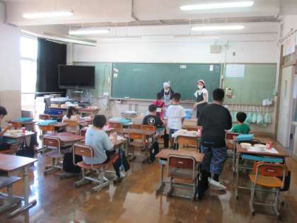 給食当番も人数が少ない中,がんばりました。そして感染防止のため,手洗いや消毒の徹底,配色の仕方の変更など今までとは変わったことが多く,戸惑うこともありましたが,協力して行うことができました。