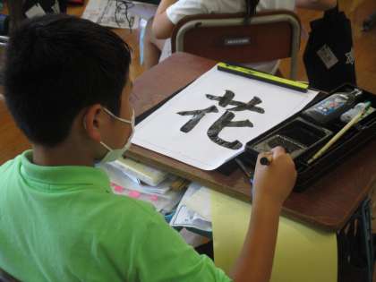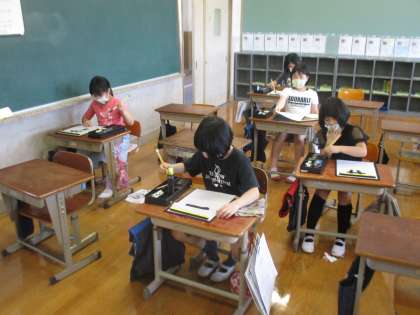 午後からはノートを開いた学習ではなく,心を落ち着けて習字をしました。いつもより周りとの座席の間隔もあいているおかげか,集中力を保ち取り組むことができていました。