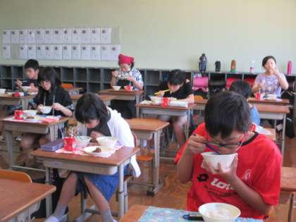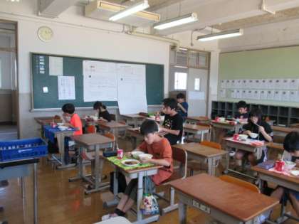 給食でした!静かに食べるというのは,寂しさもありました。しかし,久しぶりの給食,同じ給食を同じ場で食べることに大きな価値がありました。みんな一生懸命食べていました。おいしかったです。