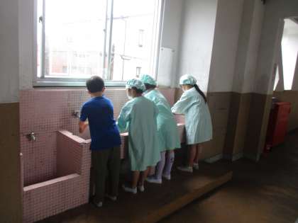 4年生はとても意識を高く持って手洗いに取り組んでいます。今日の給食前も声を掛け合って手洗いをしていました。