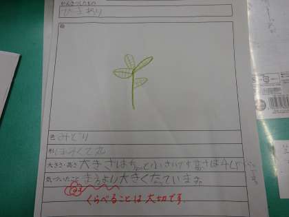 今日の理科の学習で書いた「かんさつカード」を見ていると,すばらしいものがあったので,しょうかいします。