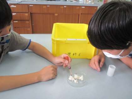 理科の学習で,植物について学習をしています。今回はまず,ご飯にヨウ素液を垂らしてみました。・・・するとどんな変化が起こったか覚えていますよね?