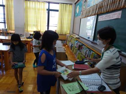 図書館へ行きました。図書分るいを思い出しながら,読みたい本をさがしていました。図書館へ入るときには「こんにちは」かえしたり,かりたりするときには「ありがとうございます」しっかり あいさつもできていました。