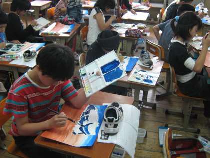 水の量を調節して,子どもたちはぬり進めていました。