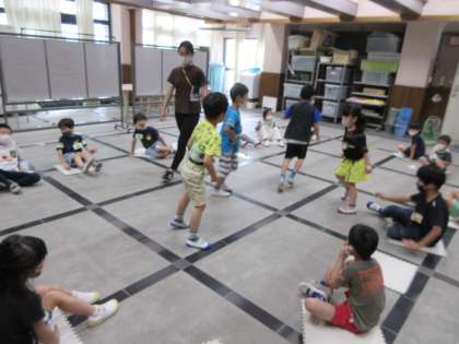 生活の時間にクラスのお友達の名前を覚えるためにフルーツバスケットをしました。一回一回お友達の名前を確認しながら,みんなで楽しくゲームをすることができました。