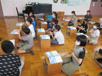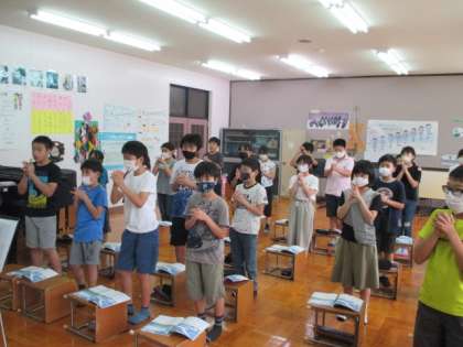 音楽の学習で,「つばさをください」の手話を教えてもらいました。大きな声を出して歌えない代わりに,体で歌詞を表現しました。みんな,歌うことのように精一杯手を動かして表現していました。
