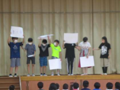 今日は1年生を迎える会でした。6年生の出し物を1年生と一緒に楽しみながら,1年生を迎えることができました!
