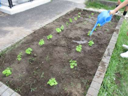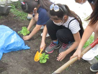 理科で育てているツルレイシをポットから畑に植え替えました!これからもみんなできっちりお世話をしていきたいと思います。