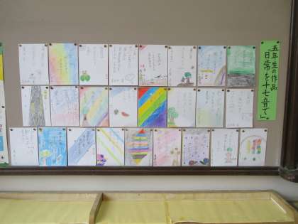 (きんちゃん)「みんな知ってる?図書室にこの間こっそり行ったら,5年生の国語で勉強したものが貼ってあったんだ。『日常を17音で』という作品だよ。」