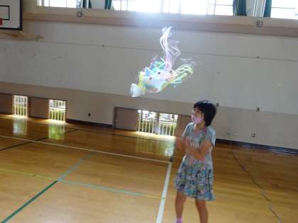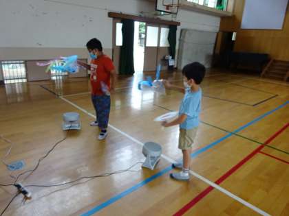 送風きとうちわを使って,ふわふわとうかばせてみました。