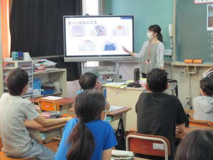 保健の学習で,感染症予防の授業をしていただきました。マスクが飛沫をどれくらい防いでいるのか。手にいる菌が手洗いや消毒によってどれくらい取り除けているのかなど,具体的な資料もたくさん見せていただきました。それによって,子どもたちは自分の生活と比べ,もっと意識を高めていかなければならないと感じたようです。マスクの着用,手洗いをさらに徹底していきたいと思います。