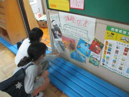 今週は,読書週間です。子どもたちは多くの本に親しんでいます。図書室に行った子どもたちは本を返すとすぐに次の本を探しに行っていました。廊下の掲示を見て「先生に紹介してもらった本がある」と嬉しそうに伝えてくれる子もいました。