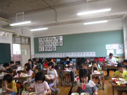 今日の給食は手巻きのりがついていて,おかずと合わせて巻いてみんなおいしそうに食べていました!