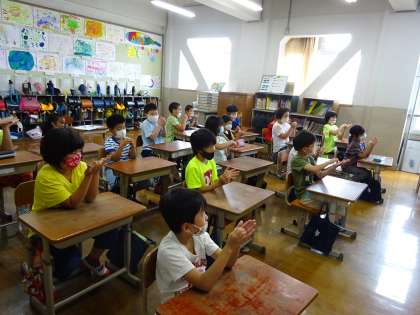 マスクの大切さや人とのきょり,遊び方など,びょう気からみをまもるために,気をつけることを考えました。また,手あらいの方ほうもふり返りましたが,みなさんが歌をしっかりおぼえていたので,とてもうれしかったです。