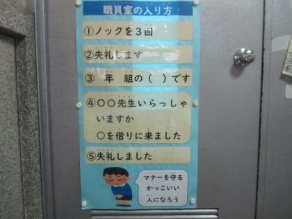 職員室の入り方が書いてあります。これはマナーです。きちんと職員室に入ってくると職員室にいる教職員も気持ちがいいです。