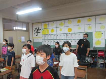5年生の歌声はとてもすてきです。変声前の,全員が同じ音域で歌う一体感のある声に魅了されました。マスクの上からでも,大きく口を開けて歌っている様子が分かりますね。