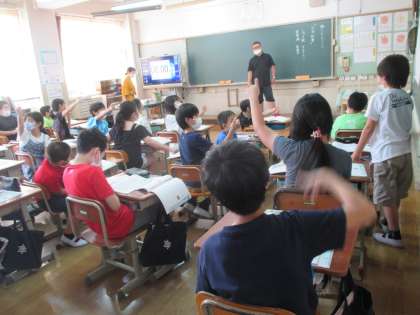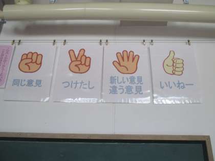 教室をのぞいてみると,一生懸命友だちの話を聞き,それを自分の考えと比べて,ハンドサインを出している姿を見ました。話している子どもはとってもうれしそうです。その光景を見て,校長先生までうれしくなってきました。やっぱり学校っていいですね。