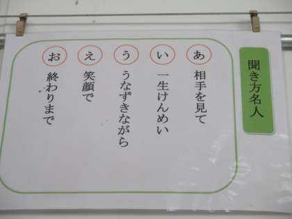 「聞く」ことについては,相手を見て聞くこと,うなずきながら聞くこと,終わりまで聞くことなどを大切にしています。