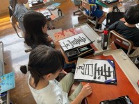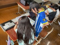 暑中見舞いをかきました。宛先は自分自身。夏休みの目標と目標実現のためにすること3つを決めて,決意表明をはがきにかきました。