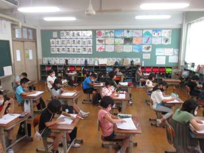 1学期の学習を振り返るための確認テストを行いました。頭を抱えて思い出しながら頑張って解いていました。