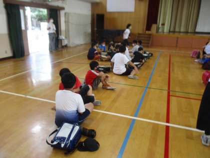 来週から始まる部活動に向けて今日は部活動開講式がありました。各部活ごとに分かれて先生の話を聞きました。4年生は,まだまだ今年も5,6年生のお兄さん,お姉さんに教えてもらいながら頑張っていきます!