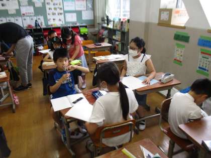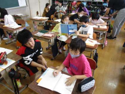 今日変わったばっかりの新しい座席,新しいペア,新しいグループで考え方を伝えあい,学習に取り組んでいました。