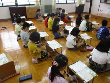今日の音楽の学習から週1回スクールサポーターの先生にも入ってもらっています。今日は音楽室で歌とリコーダーを楽しく学習しました!