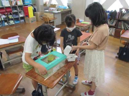 生活科で自分たちが捕まえた虫を
