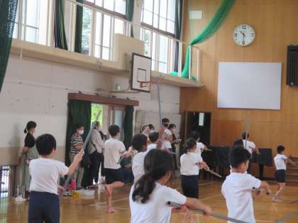 自由参観でがんばる子どもたちを温かな目で見ておられる保護者の皆さんを見ていて,優しい気持ちになりました。体育参観に向けての練習では,スマホで写真や動画をとられていたり,頑張る姿をじーっつ見つめておられたり様々でしたが,温かな空気に包まれながらも凛とした空気があり,大変良い雰囲気の練習でした。聞こえてはきませんが「がんばれ!」というエールがたくさん飛び交っていました。