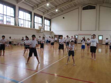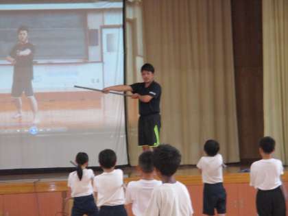 先生の動き・体の形を食い入るようにしてみる子どもたち。どんどん上達しています。