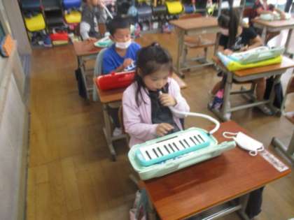 音楽の時間鍵盤ハーモニカをつかって練習しています。
