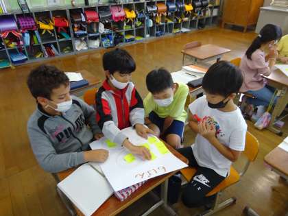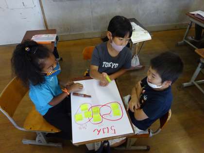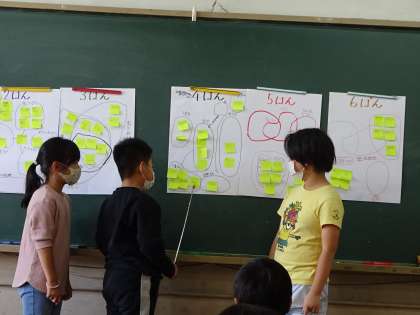意見が分かれたはんもありましたが,話し合いをすすめて「持っていく物」と「決めた理由」を発表することができました。