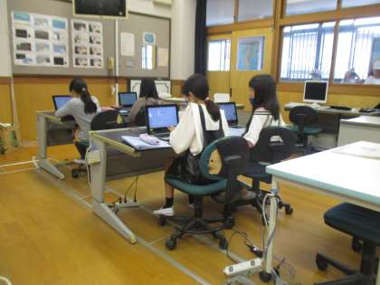 国語科では,「伝統工芸のよさを伝えよう」という単元でリーフレットづくりに取り組みます。それに向けてインターネットを使って調べ学習を行いました。