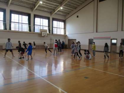 1年生と遊ぶ計画を立てています。感染対策のため,ソーシャルディスタンスを保った遊びを工夫して考えなければいけません。今日は,実験として6年生だけで遊びを試してみました。試した遊びは「だるまさんがころんだ」。タッチする代わりに鬼の後ろの線を「タッチ!」と言いながらふむというルールです。改善点を見つけ次の話し合いに活かします。